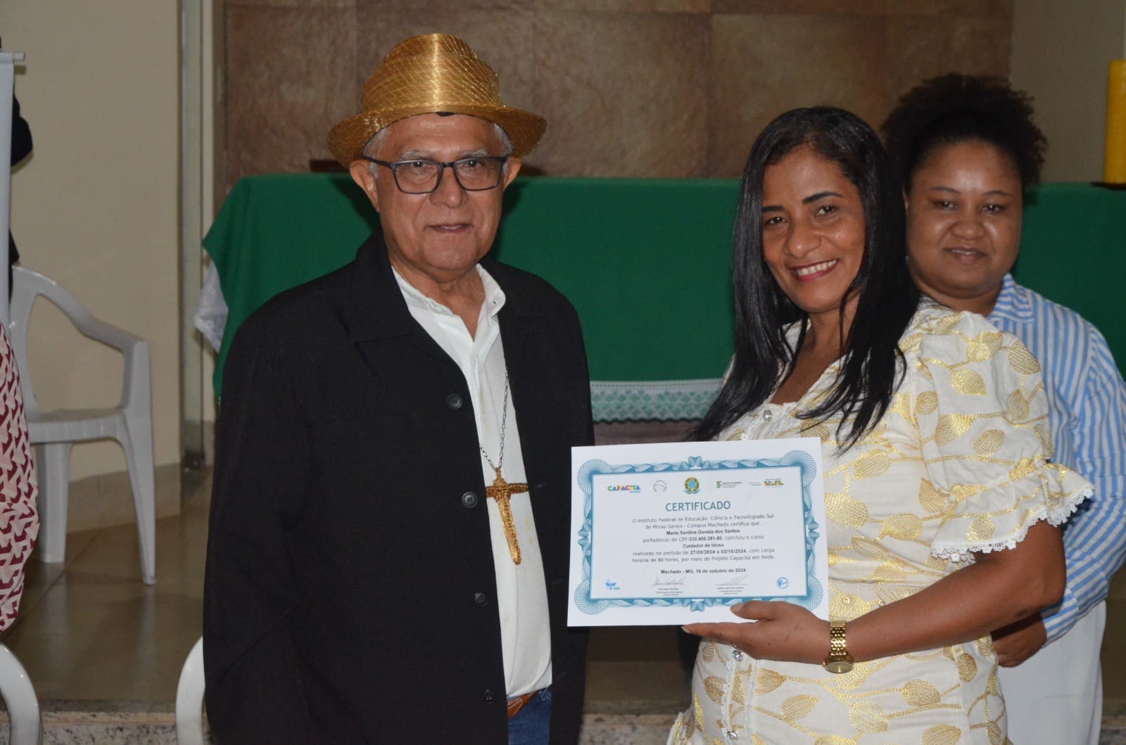 Nos dias 16 e 17 de outubro, o Regional Norte 3 realizou a Entrega dos Certificados dos concluintes do Projeto Capacita em Rede. A programação ocorreu em Porto Nacional e em Palmas, reunindo mais de 100 participantes de várias cidades. Foram ofertados quatro cursos, distribuídos em sete turmas. O evento contou com a presença do professor Professor Roberto Camilo Orfão de Morais, coordenador geral do Projeto e membro da IFSULDEMINAS, dos bispos, Dom José Moreira em Porto Nacional e Dom Pedro Brito Guimarães em Palmas.