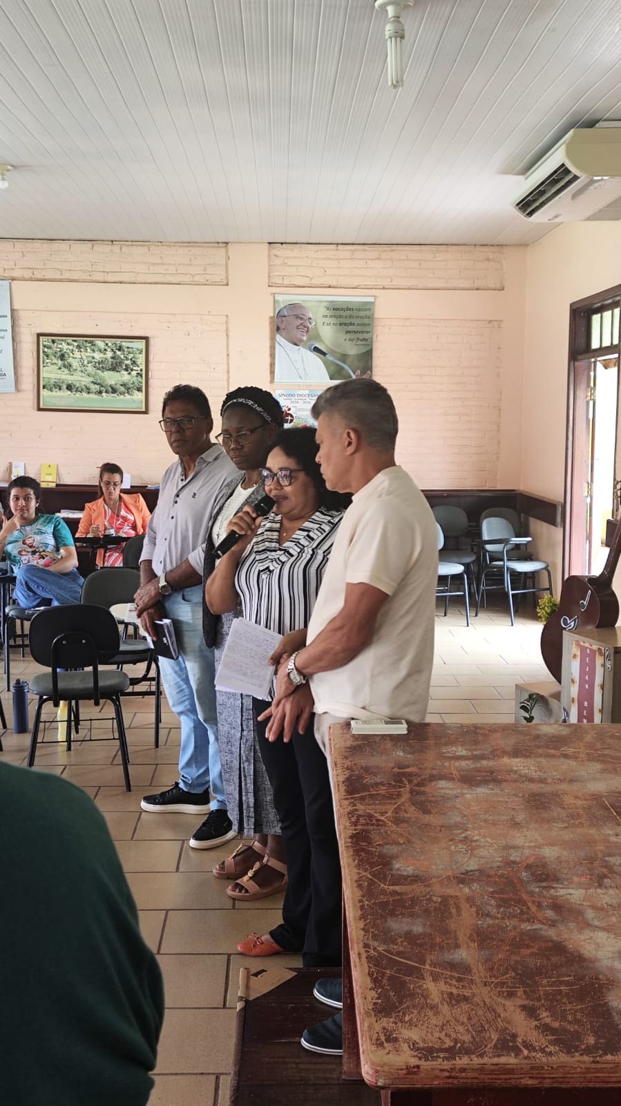 Como parte do processo formativo, foram apresentados exercícios mistagógicos e materiais pastorais destinados à aplicação nas dioceses, com o propósito de favorecer uma compreensão mais profunda do mistério celebrado por meio dos cantos, ritos, gestos e símbolos litúrgicos. Entre as atividades práticas, destacou-se o estudo do canto “Fiel Madeiro da Santa Cruz”, relacionado à celebração da Sexta-Feira Santa, aprofundando sua dimensão ritual e espiritual.